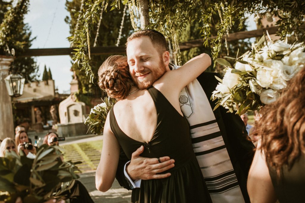 Shannon and Adam had a Jewish wedding with a typical Jewish ceremony and therefore they got married underneath a stunning floral chuppah.