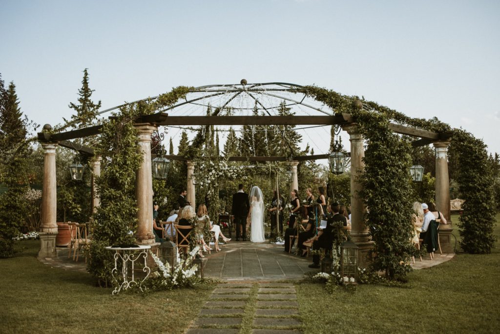 Shannon & Adam opted for an outdoor wedding with an outdoor ceremony and what better than the grounds of L’antica Fattoria di Paterno to create an ideal Italian wedding setting? The venue offers a beautiful gazebo that for the occasion got decorated by the talented hands of Maurizio at Flowers Living.