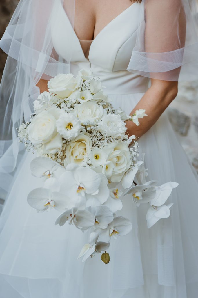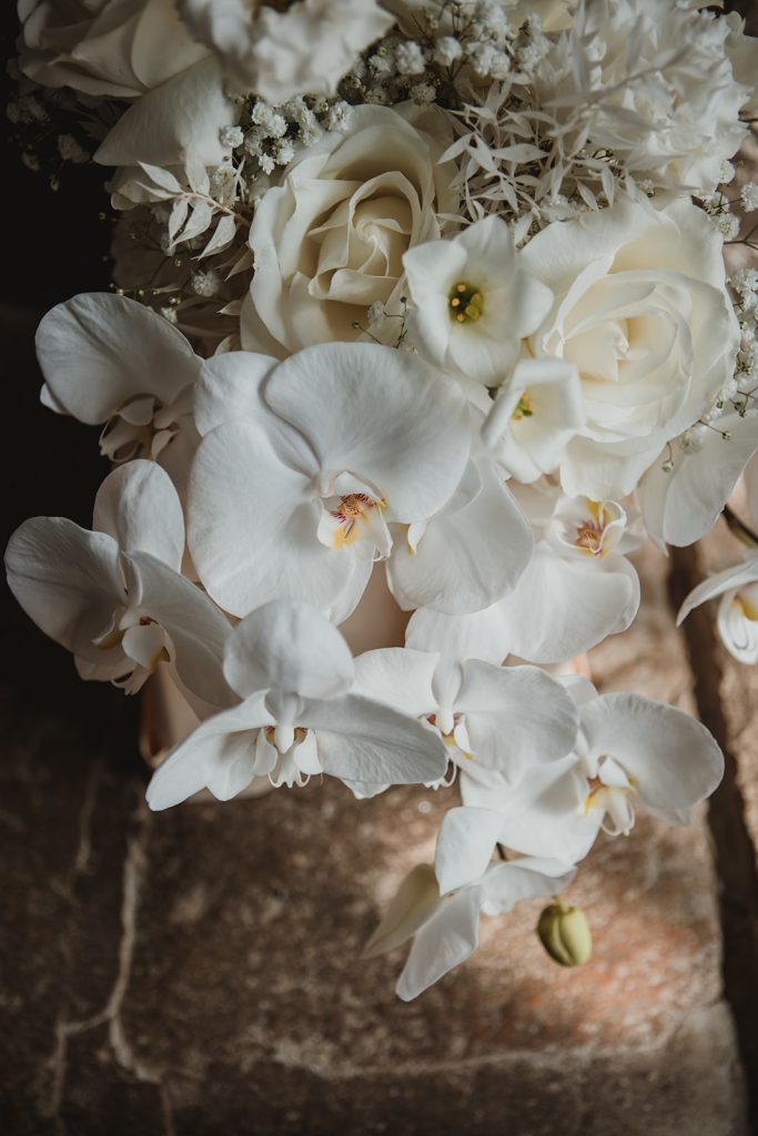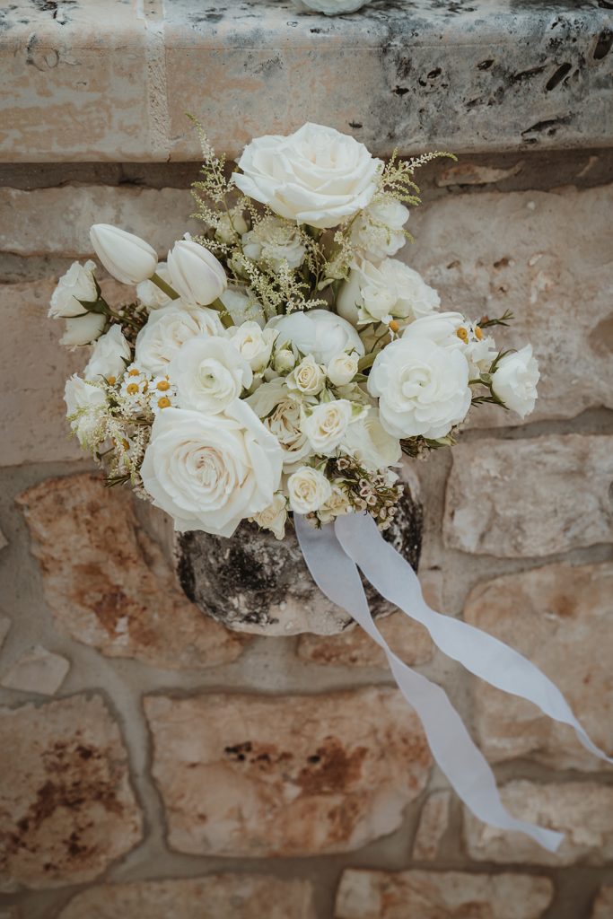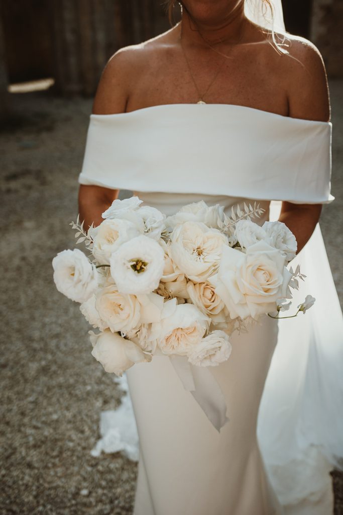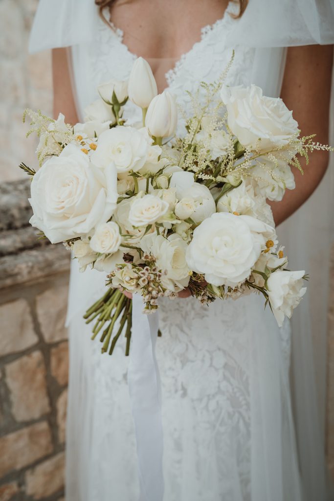 Be inspired by this Real Destination Wedding in Italy with a total white bridal bouquet
