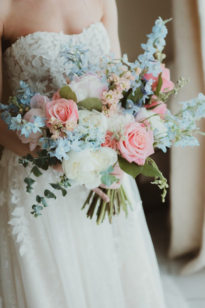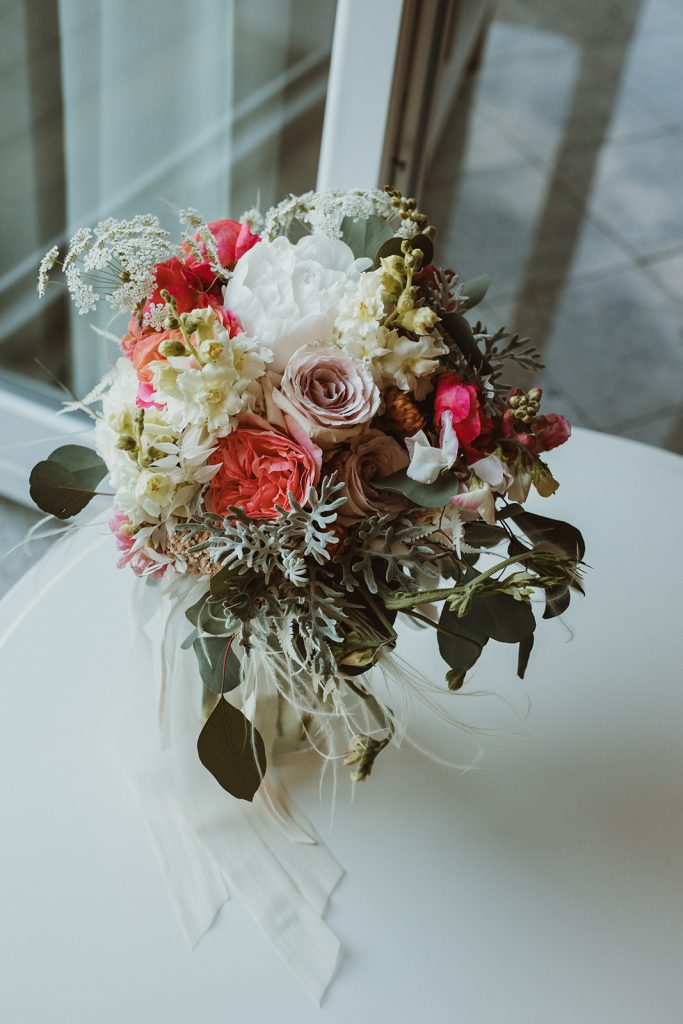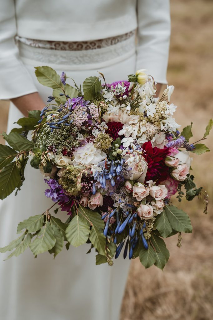Elopements are an intimate and adventurous way to exchange vows, often in picturesque and remote locations. When it comes to elopement bouquets, simplicity and versatility are key. We usually suggest opting for a loose bouquet with a natural, wildflower aesthetic that complements the rugged beauty of your surroundings. Choose blooms and foliage that are hardy and long-lasting, such as wildflowers, eucalyptus, lavender, and ferns, which will hold up well during your day and make for stunning photos against dramatic landscapes. Consider incorporating elements like feathers, twigs, or ribbons for a touch of whimsy and personalisation. Whether you’re exchanging vows on the top of a mountain peak, by a tranquil lake, or in a secluded forest glade, your elopement bouquet will serve as a beautiful and meaningful symbol of your love and commitment, wherever your adventure takes you.