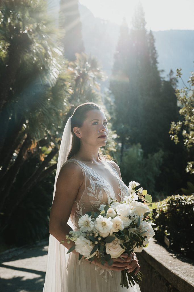 Be inspired by this Real Elopement on Lake Como with a White and Green Bridal Bouquet: