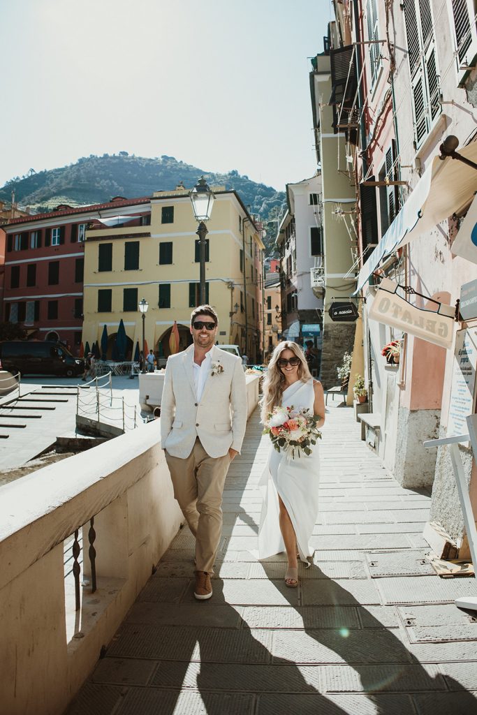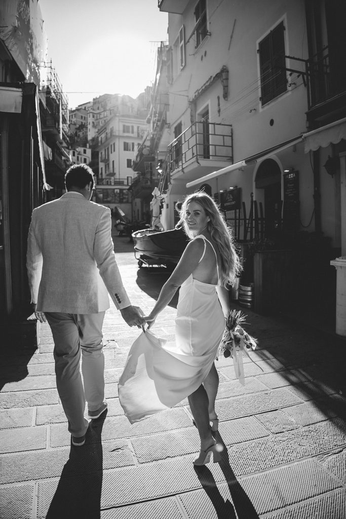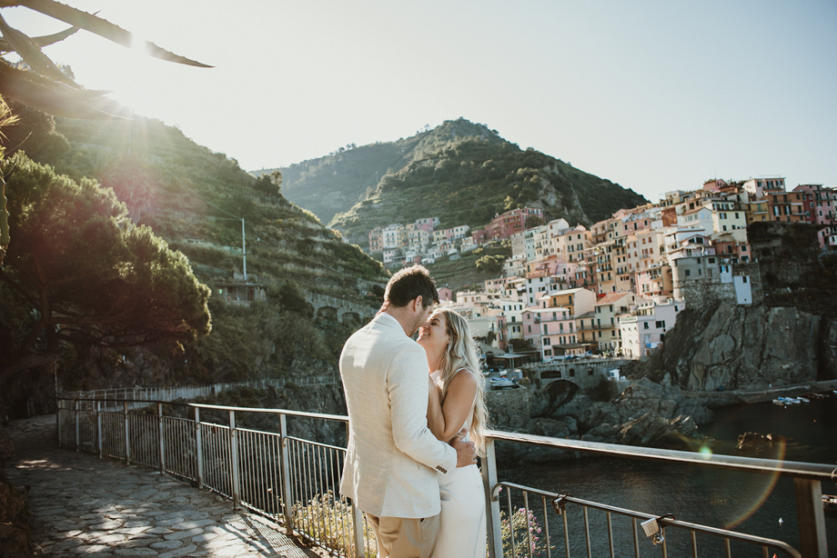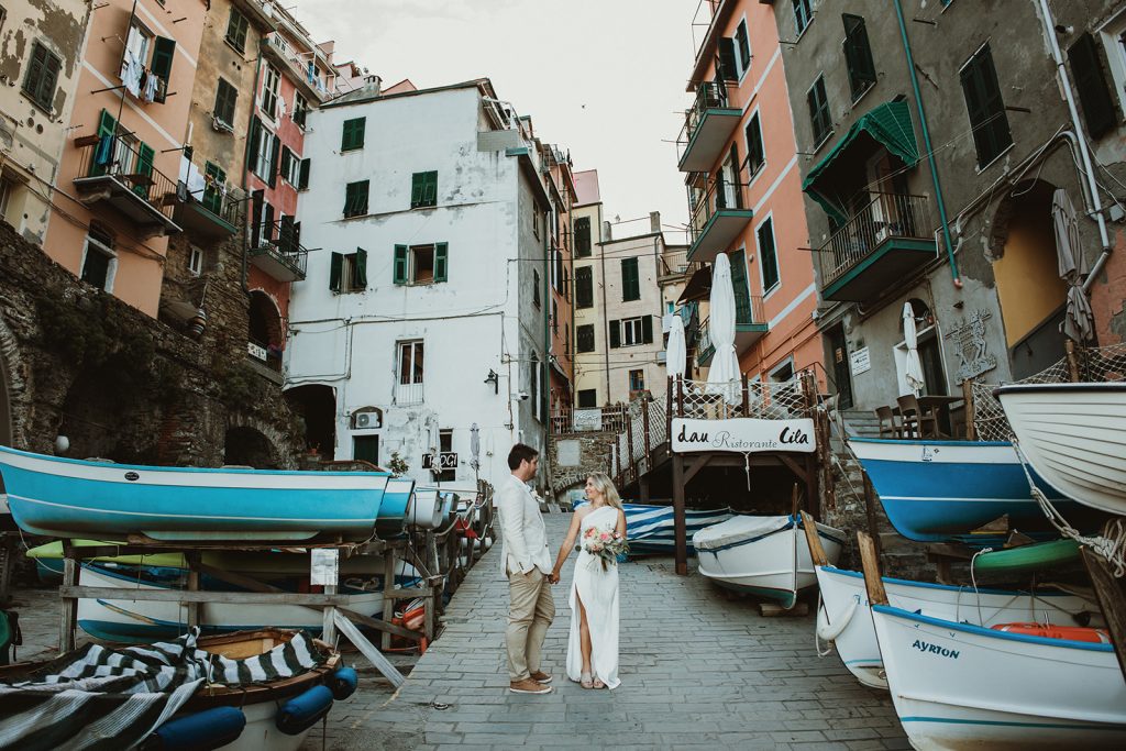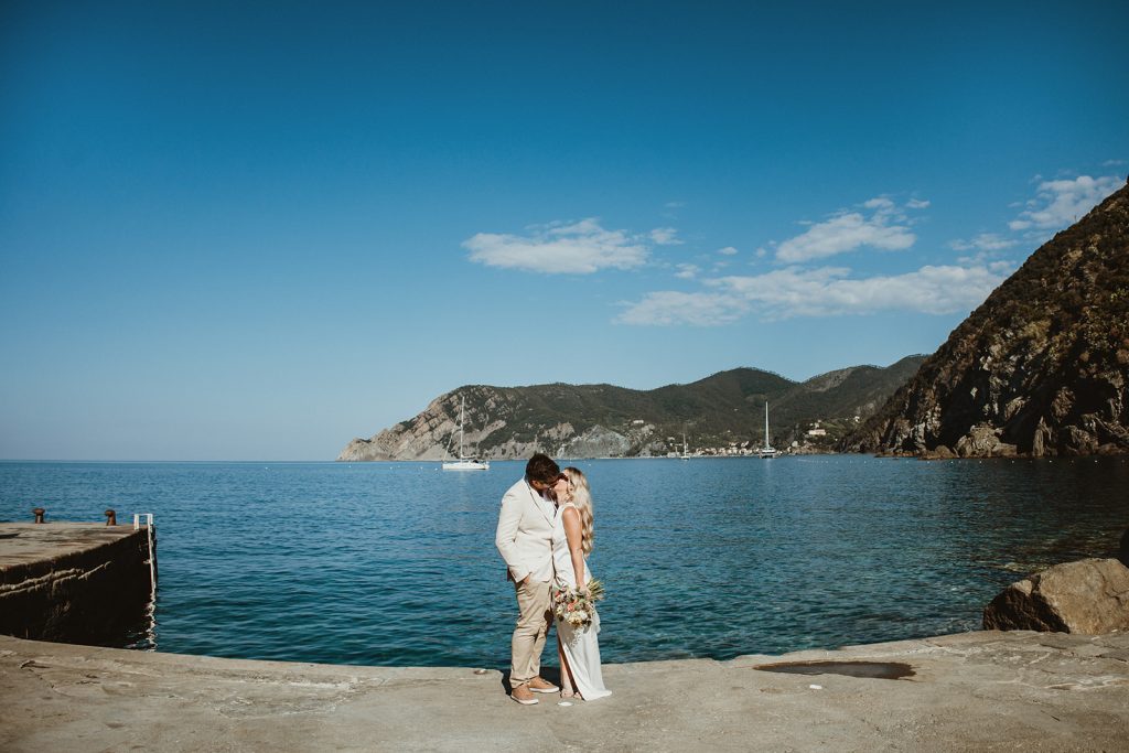 So, we asked for their travelling plans, with the itinerary and dates of their journey, combined it with our calendar and found the spot that fitted perfectly their needs: Le Cinque Terre. Liz and Chris were in fact looking for a coastal destination for their Italian elopement and le Cinque Terre is one of the most beautiful ones you can find in Italy. As elopement photographers in Le Cinque Terre, planning and documenting elopements through its little alleys, unique rocks and colourful houses is what we love doing the most.