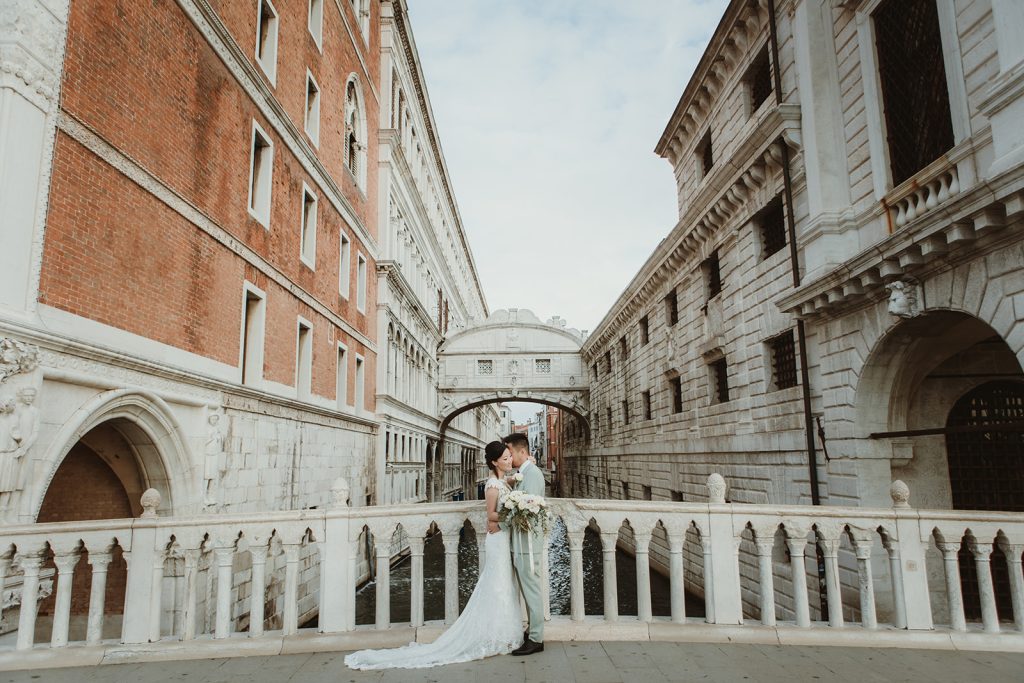 Eloping to Venice would be ideal for those romantic souls that feel the charm of an ancient city almost floating on the water and love the pastel colours of the building and the canals. A private Vaporetto tour or a gondola ride is always a must in an elopement in Venice, but why not consider celebrating your symbolic ceremony right on the gondola while cruising the canals?