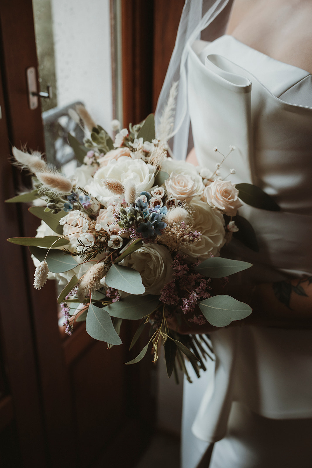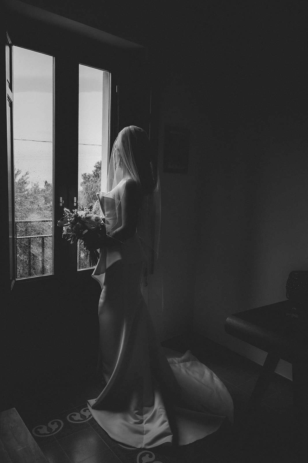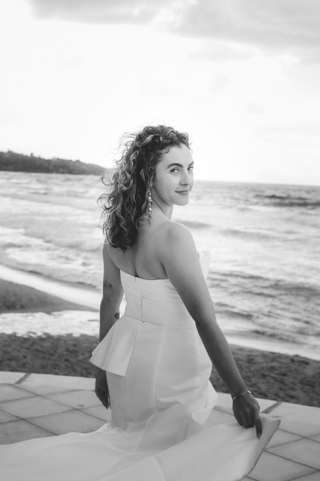 Jess got ready at the villa, surrounded by her closest people, with her sister doing her hair and makeup. There was no rigid timeline, no rush from one moment to the next — just quiet conversations, shared anticipation, and that calm energy that comes when everyone feels comfortable in the same space.
