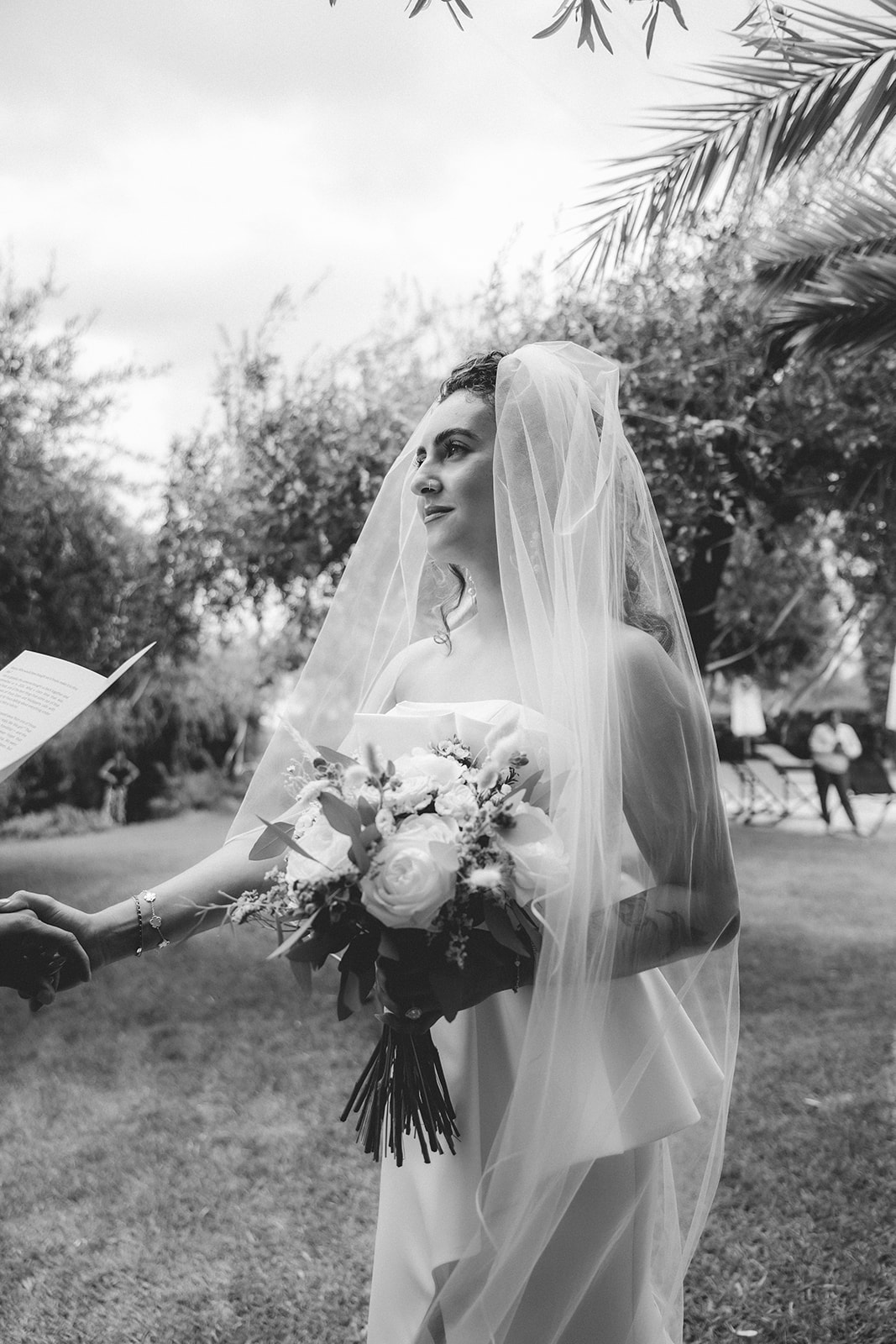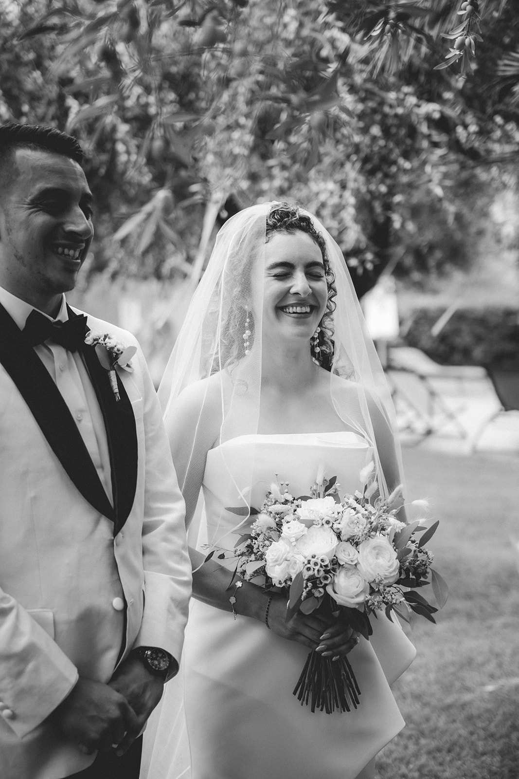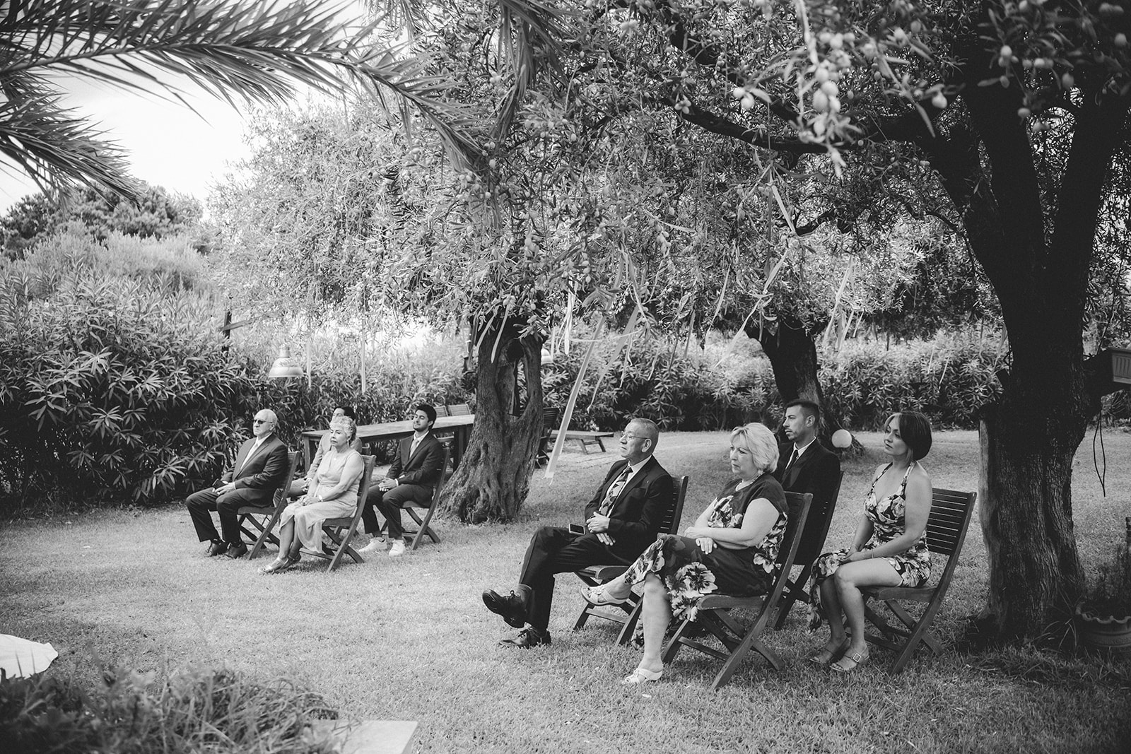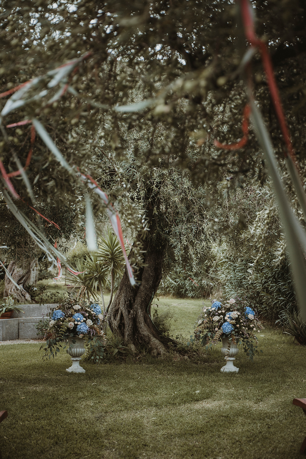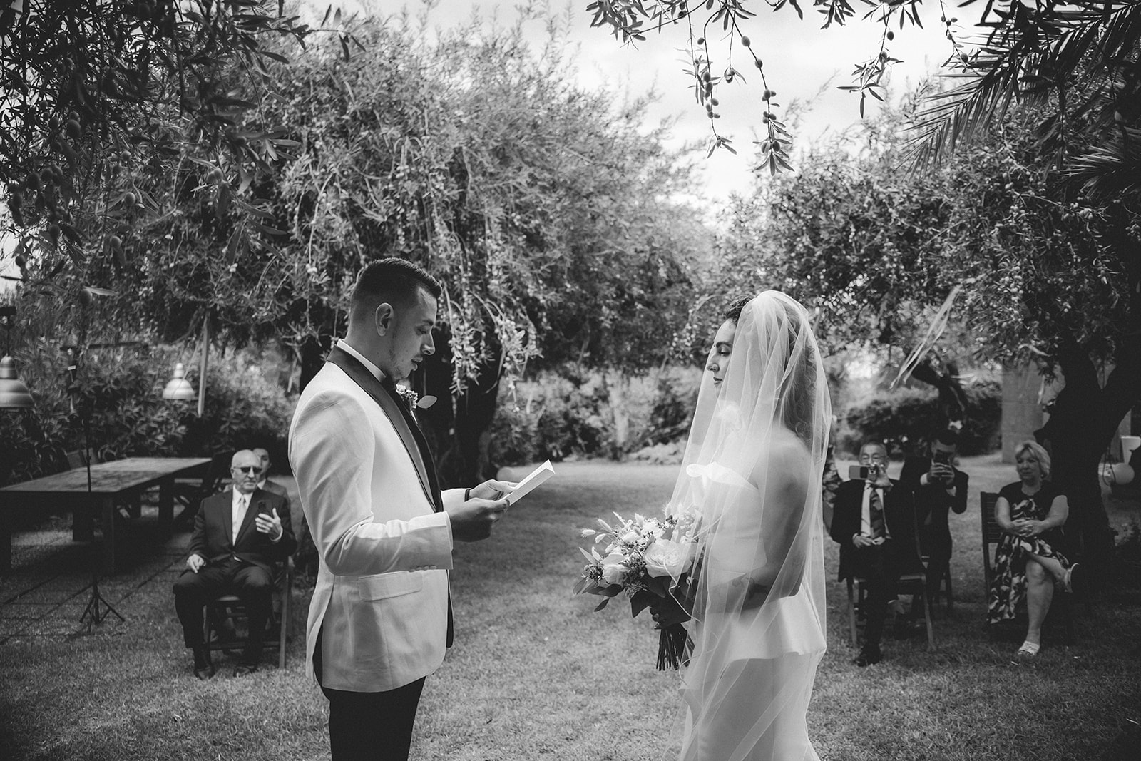 The ceremony itself was symbolic and personal, held in the garden of the villa with their family gathered around them. No rows, no aisle, no expectations — just presence. It felt intimate in the truest sense of the word, grounded in connection rather than tradition.