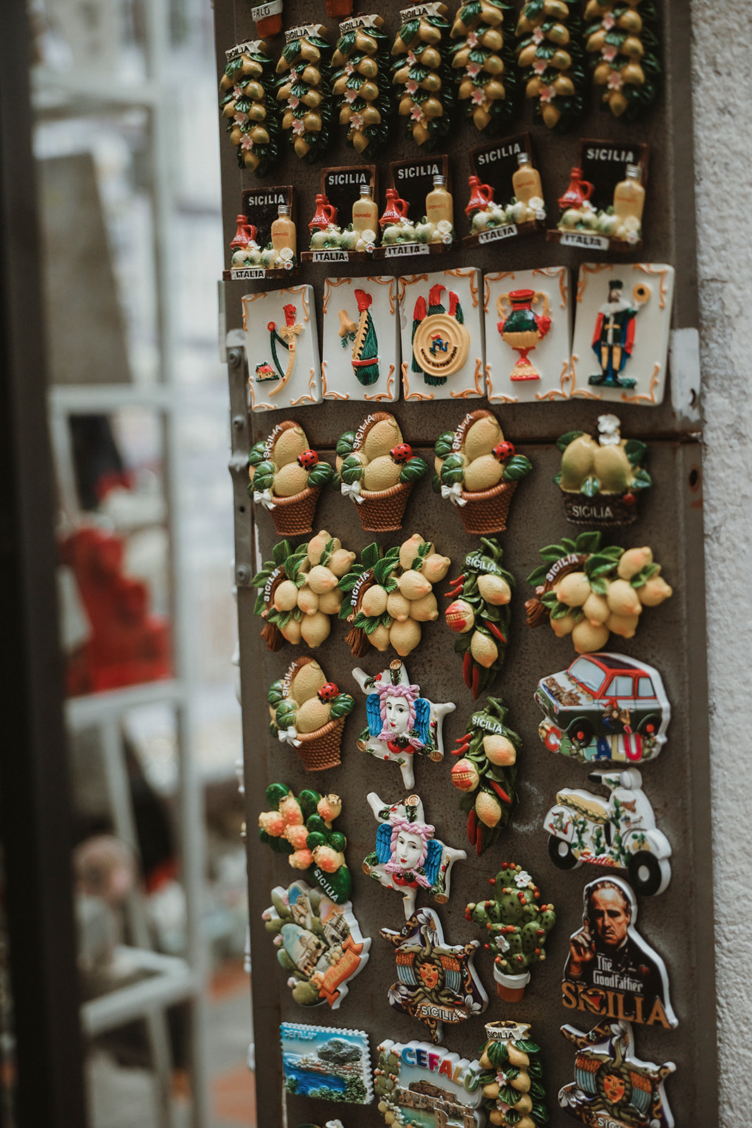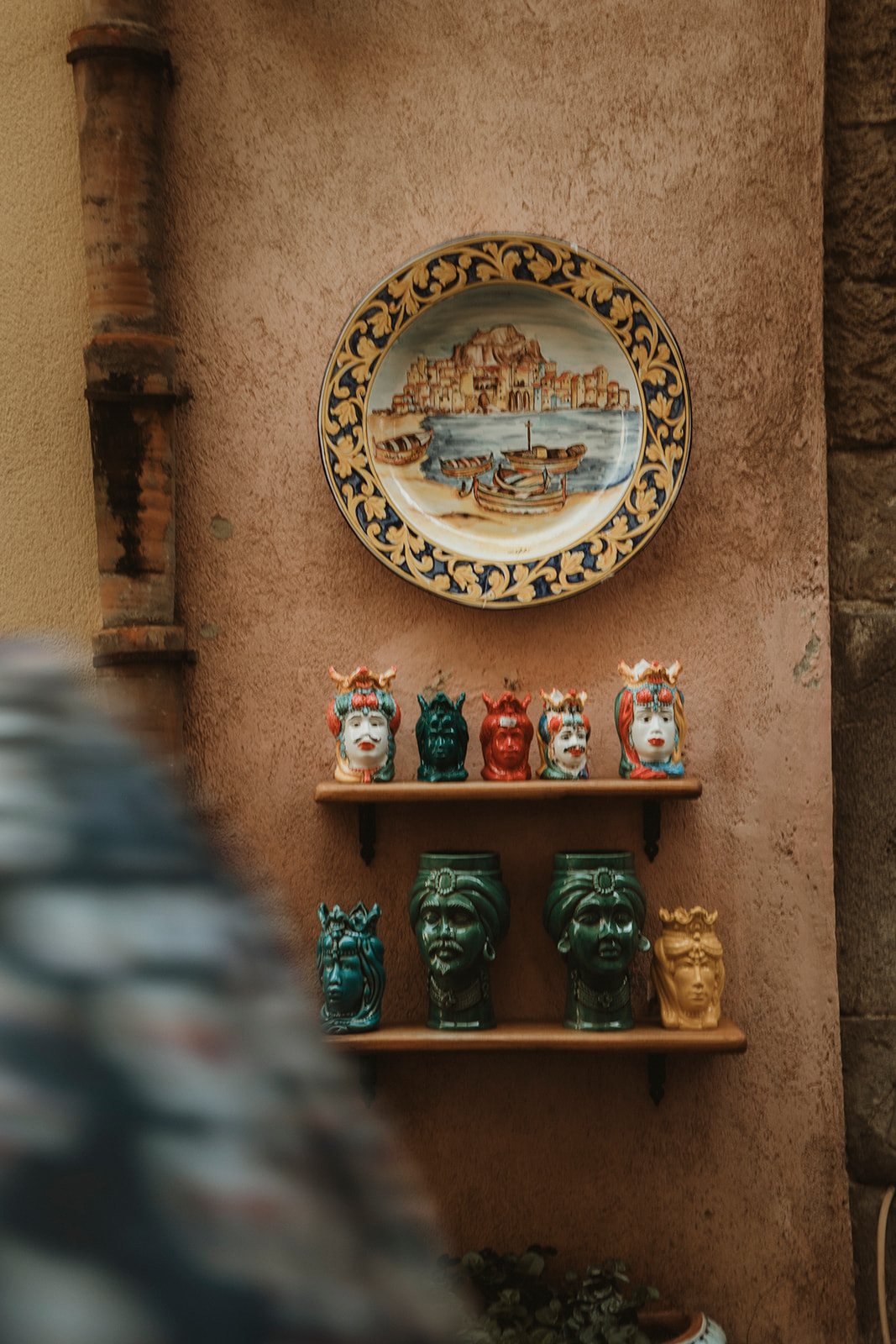 Traditional Sicilian ceramics displayed in a shop in Cefalù