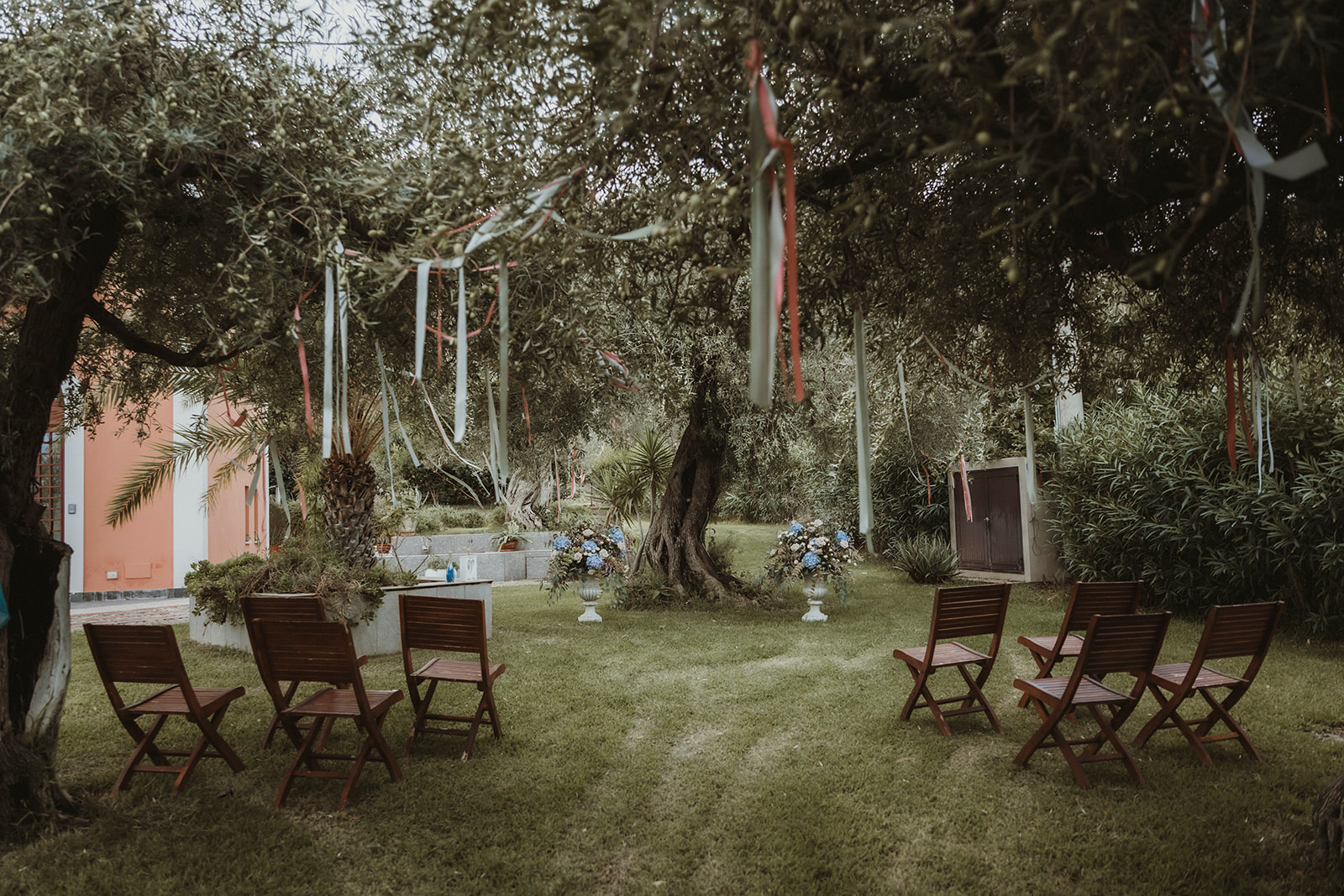 Ceremony setting in the private gardens of a villa in the countryside of Cefalù, Sicily