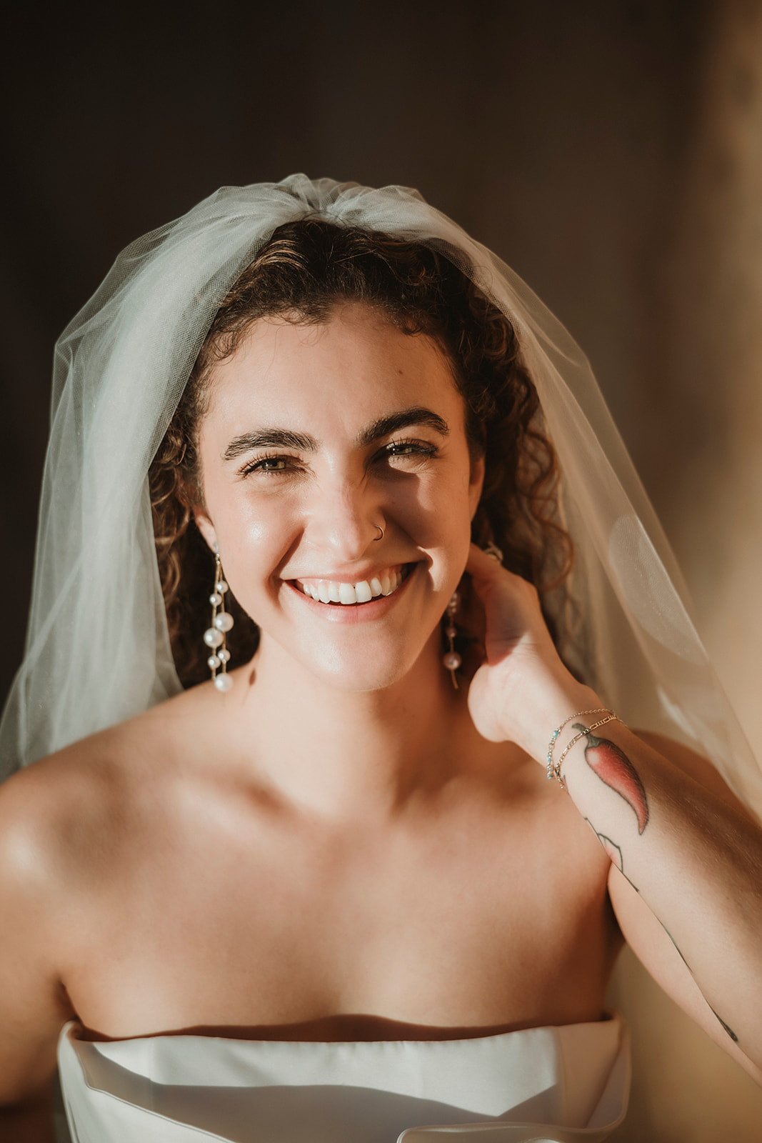 Bride smiling in natural light during an intimate elopement in Sicily