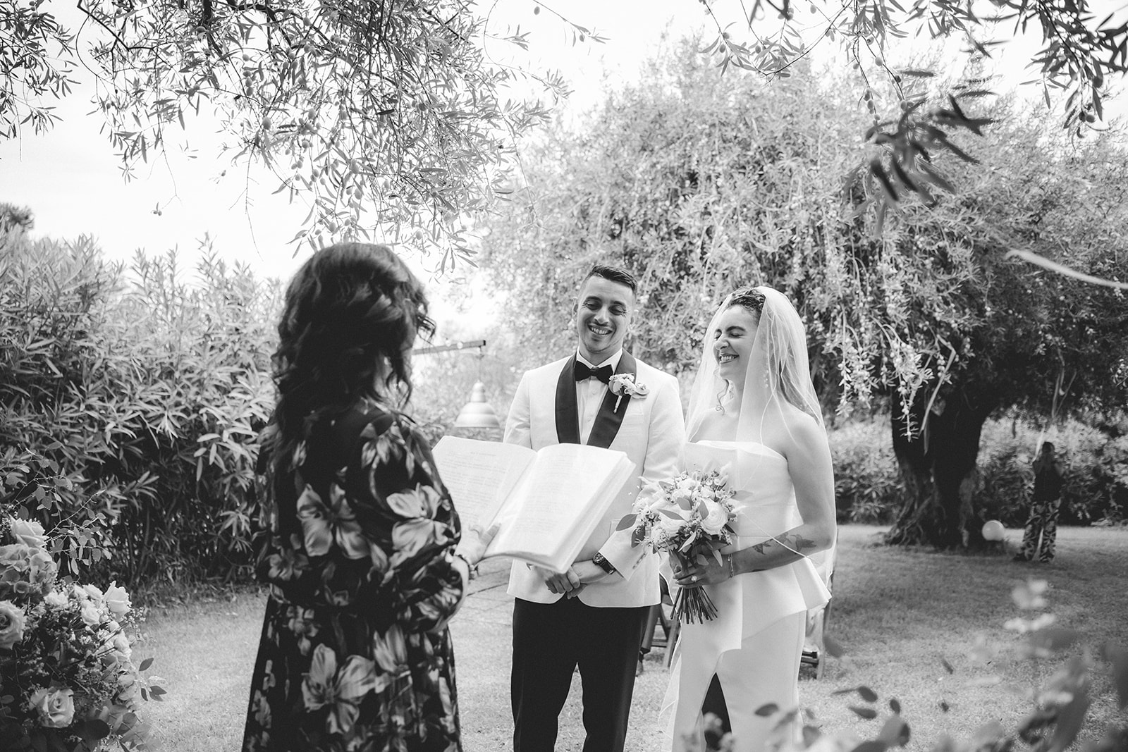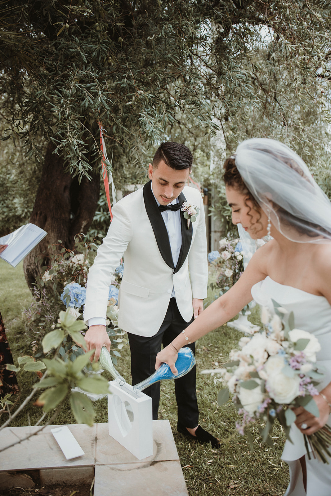Nico and Jess chose a sand symbolic ceremony — a simple, meaningful gesture that felt right for them and easy to share with their family. Set in the garden of the villa, the ceremony was intimate and unstructured, yet funny and emotional.