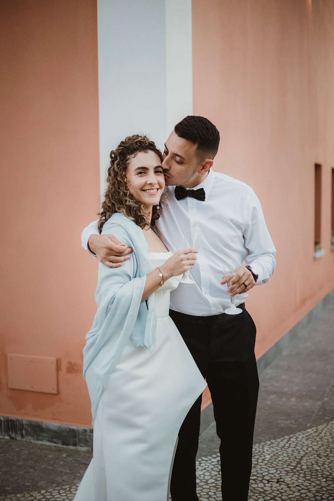 Intimate elopement portrait with historic architecture in Cefalù