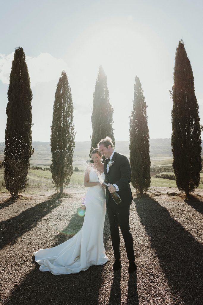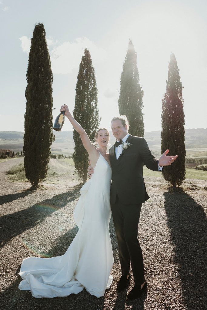 This location also makes it ideal for couples who want to explore the surrounding Val d’Orcia villages and landscapes for unforgettable portraits during their Tuscany elopement day.