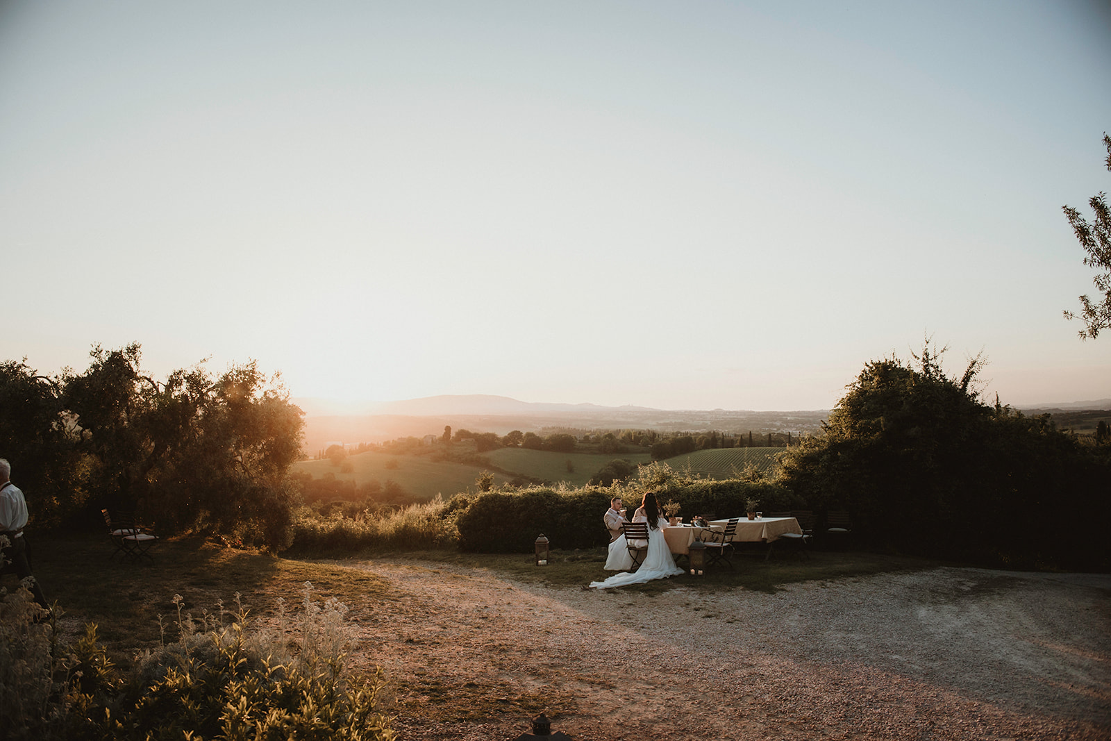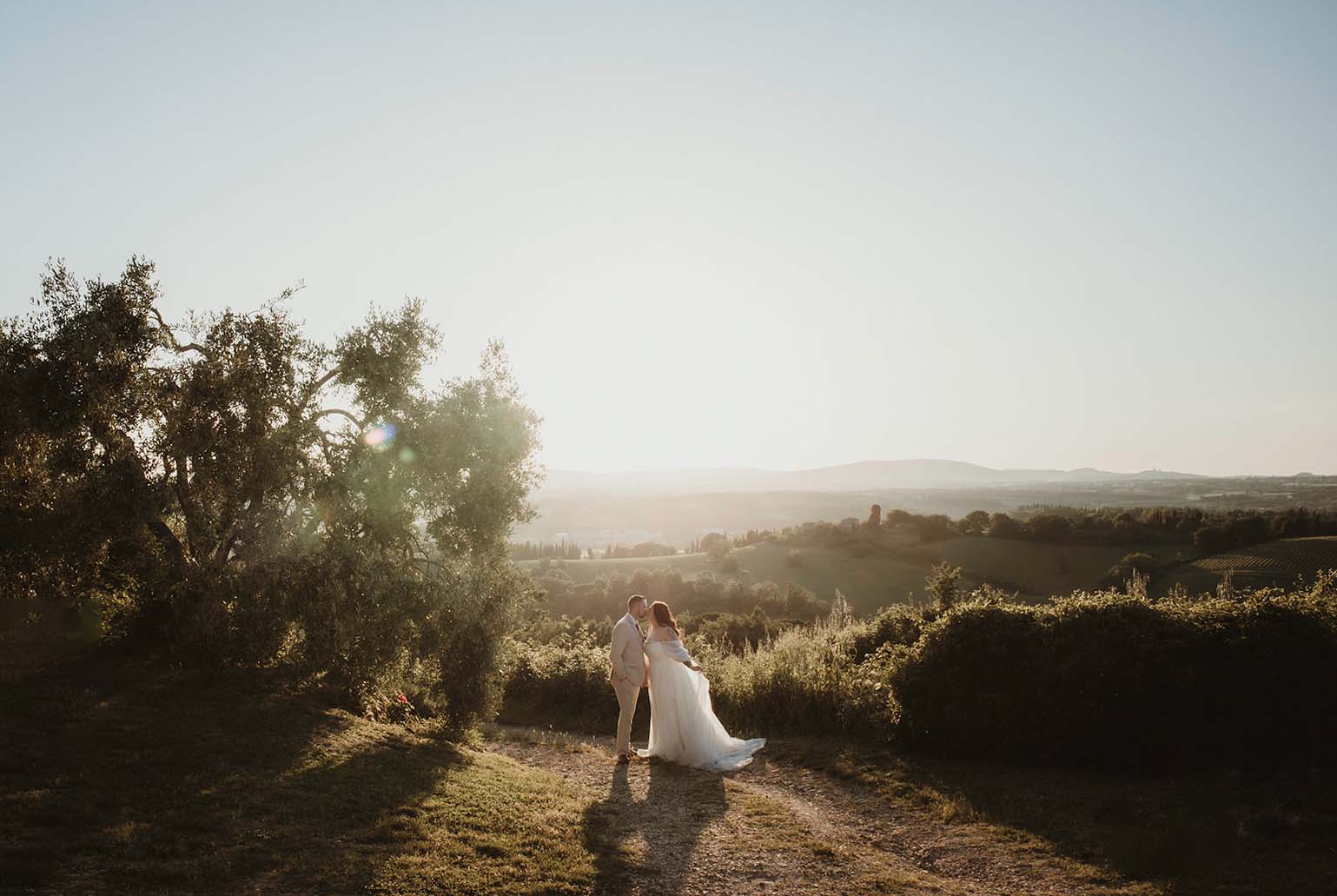 The most magical light of the day, perfect for romantic portraits surrounded by the Tuscan landscape.