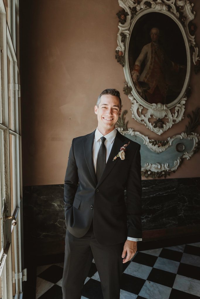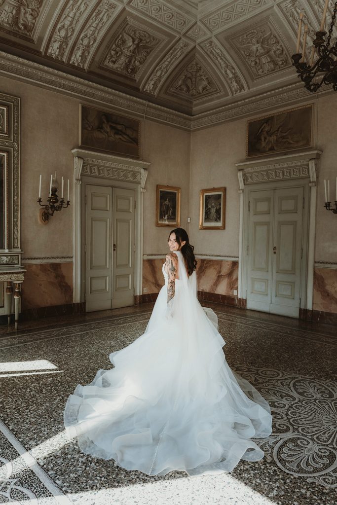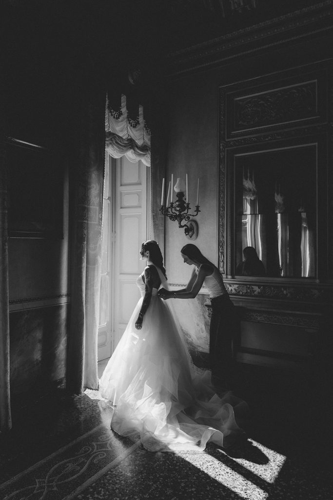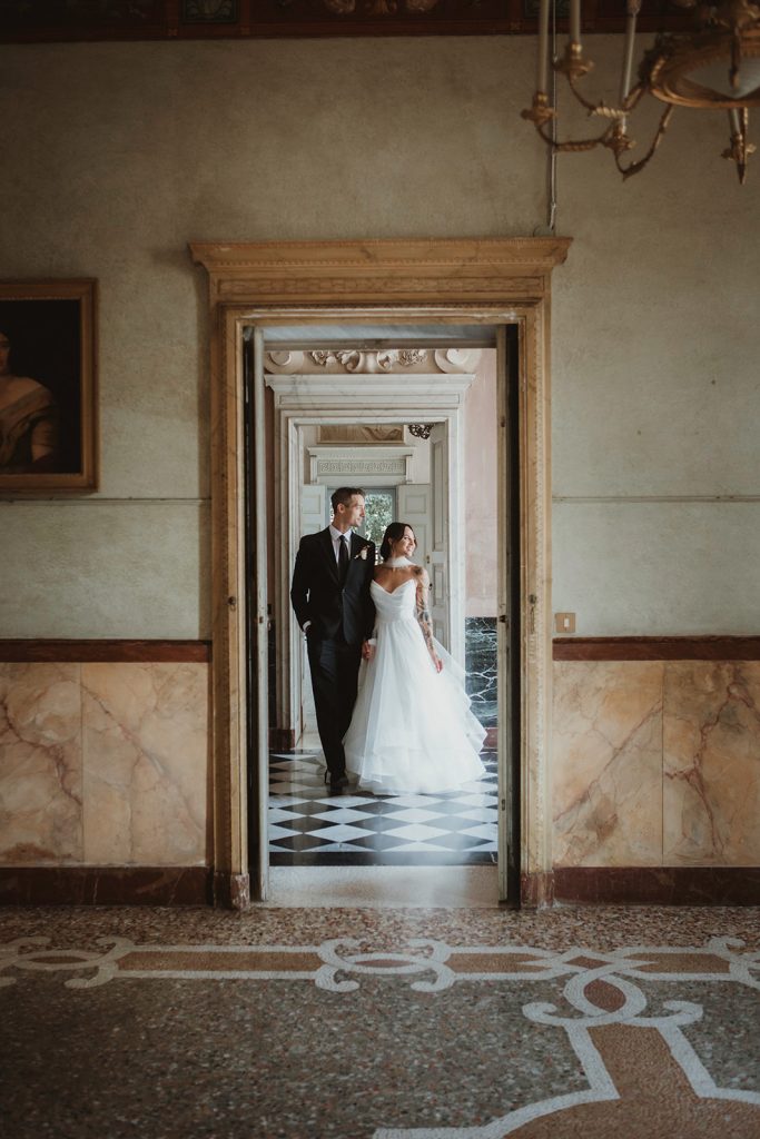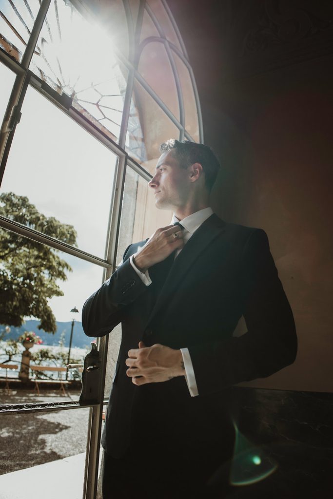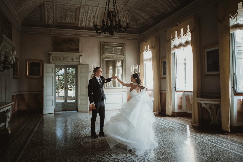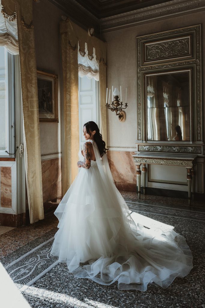 For this beautiful Lake Como elopement at Villa Pizzo, we couldn’t think of a better place for the first look than one of the many exquisite rooms of the luxury villa we carefully selected. The atmosphere of this historic villa feels almost surreal, a perfect reflection of Sadie & Lane’s quiet, heartfelt elegance.