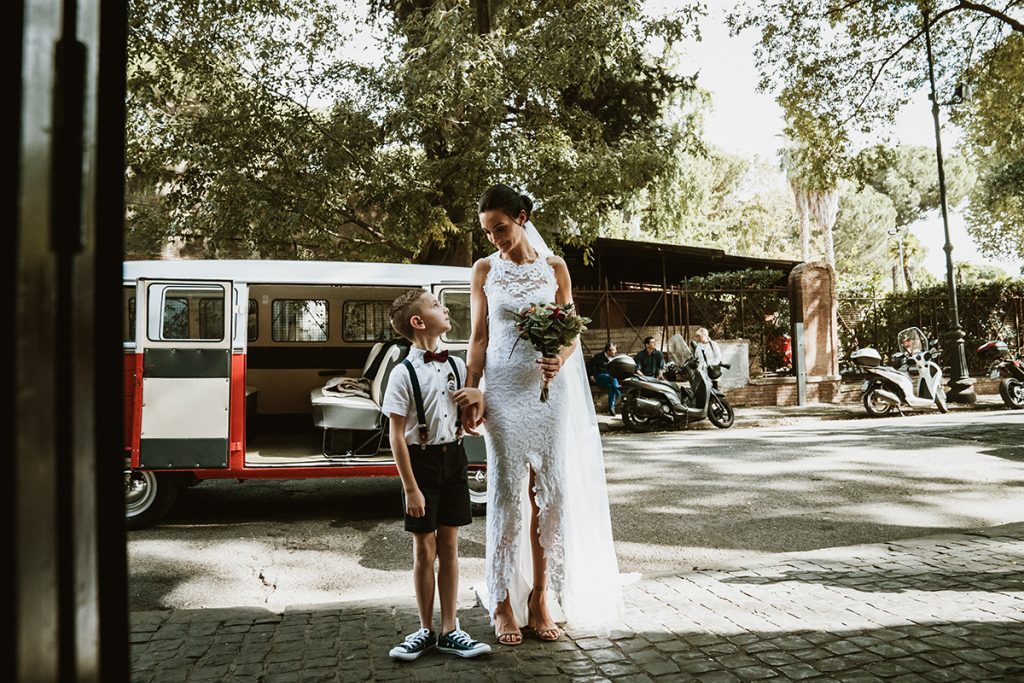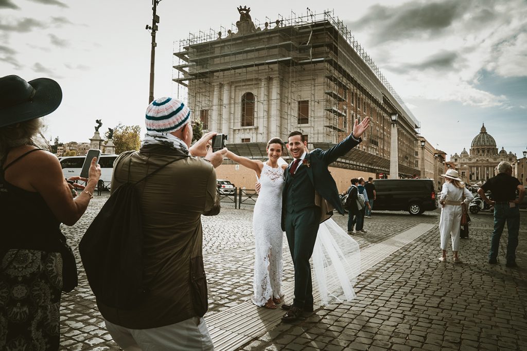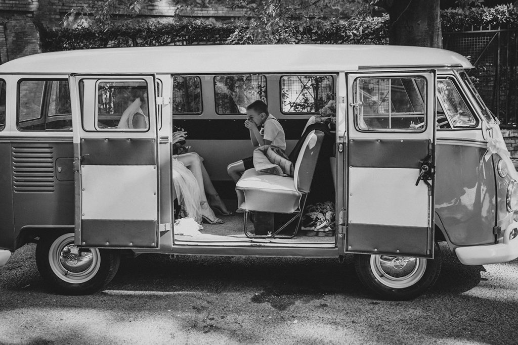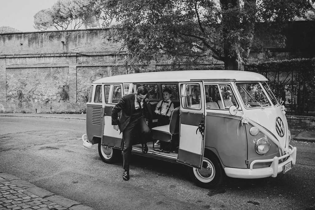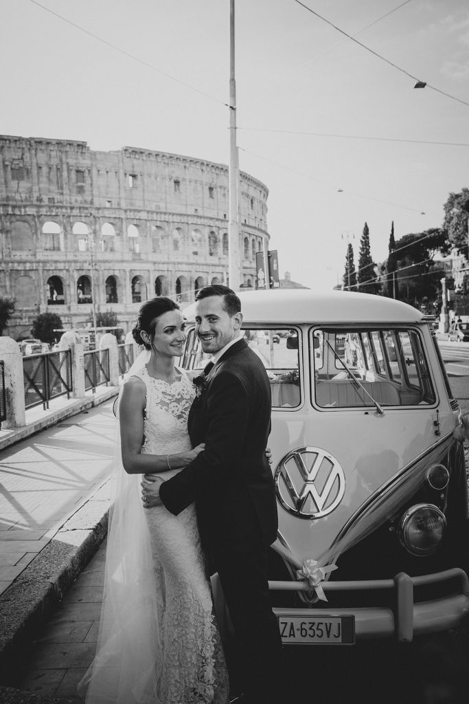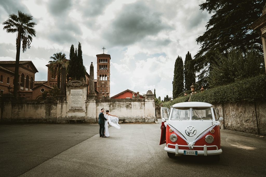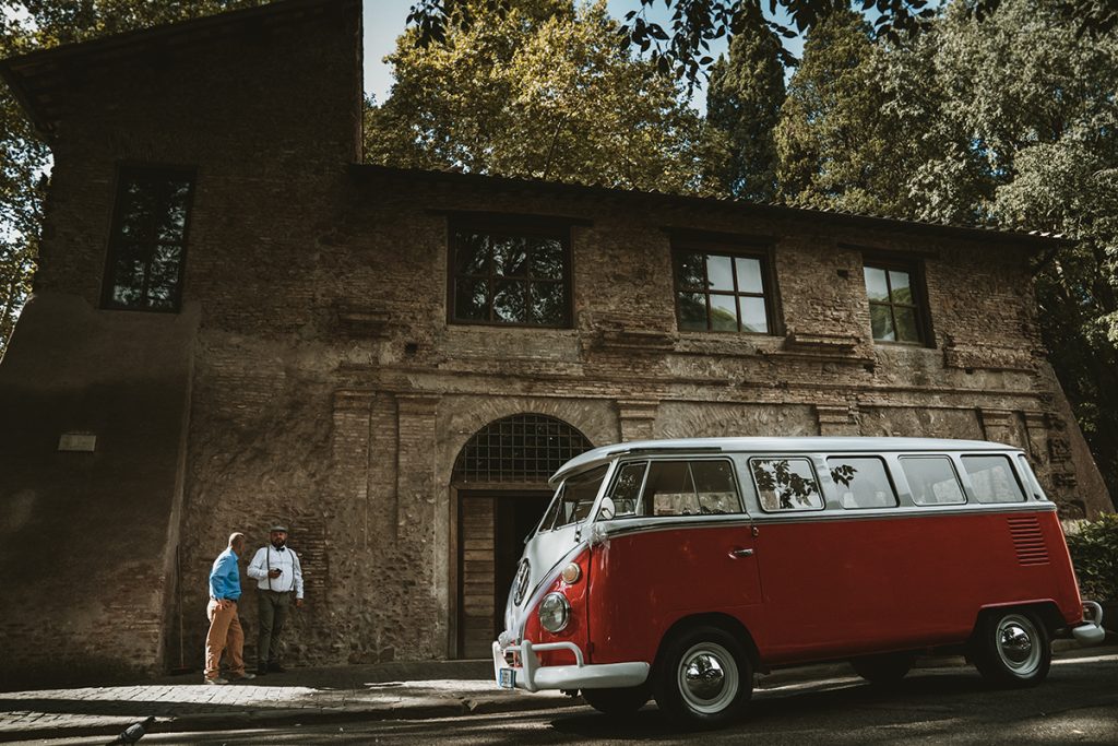 They rented a vintage van with Italian Vintage Garage so they could have a tour through the most beautiful sites in Rome (from the Colosseum to the Fori Imperiali, from Castel Sant’Angelo to San Pietro and of course, we were just so excited to follow them on their day and take wedding pictures in the most iconic places in the whole city.