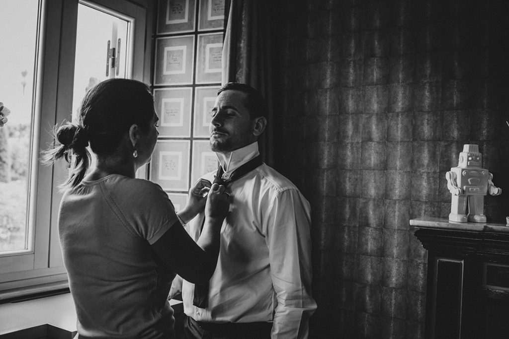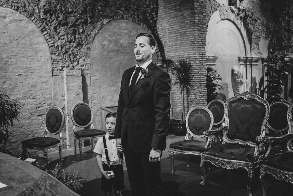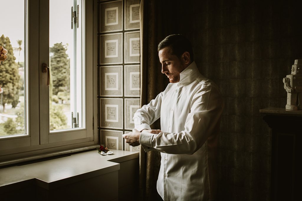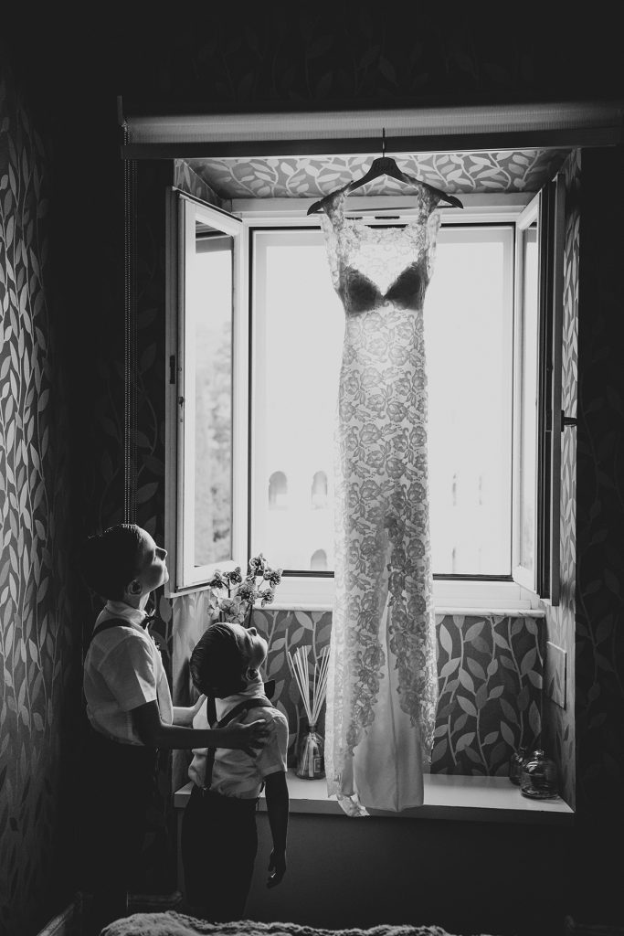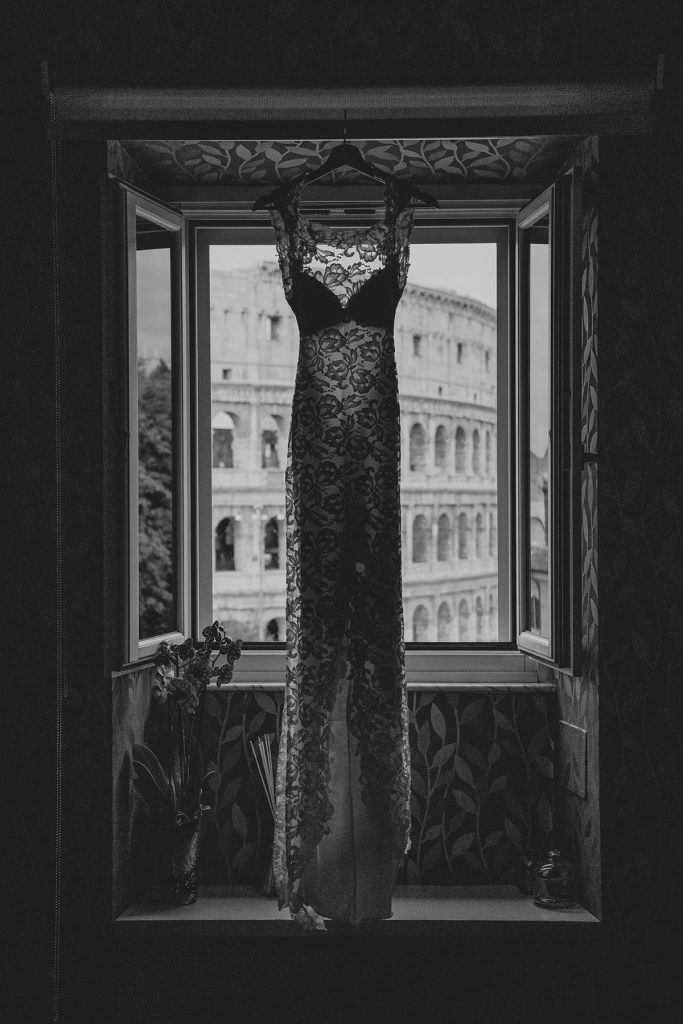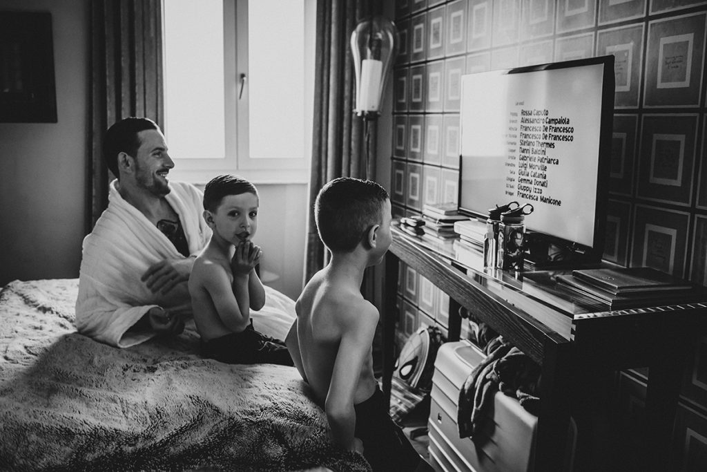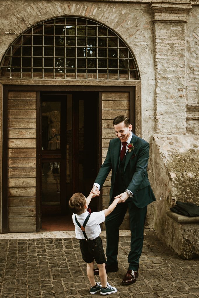 They got ready at Palazzo Manfredi(Rome) where they had one room overlooking the Colosseum. The room was designed in a way that they could not see each other while getting ready and still both share this same moment with both their two children.