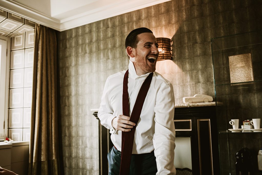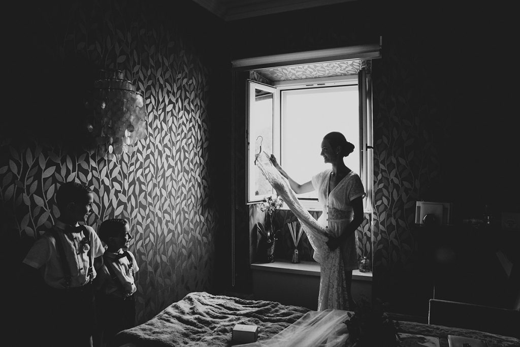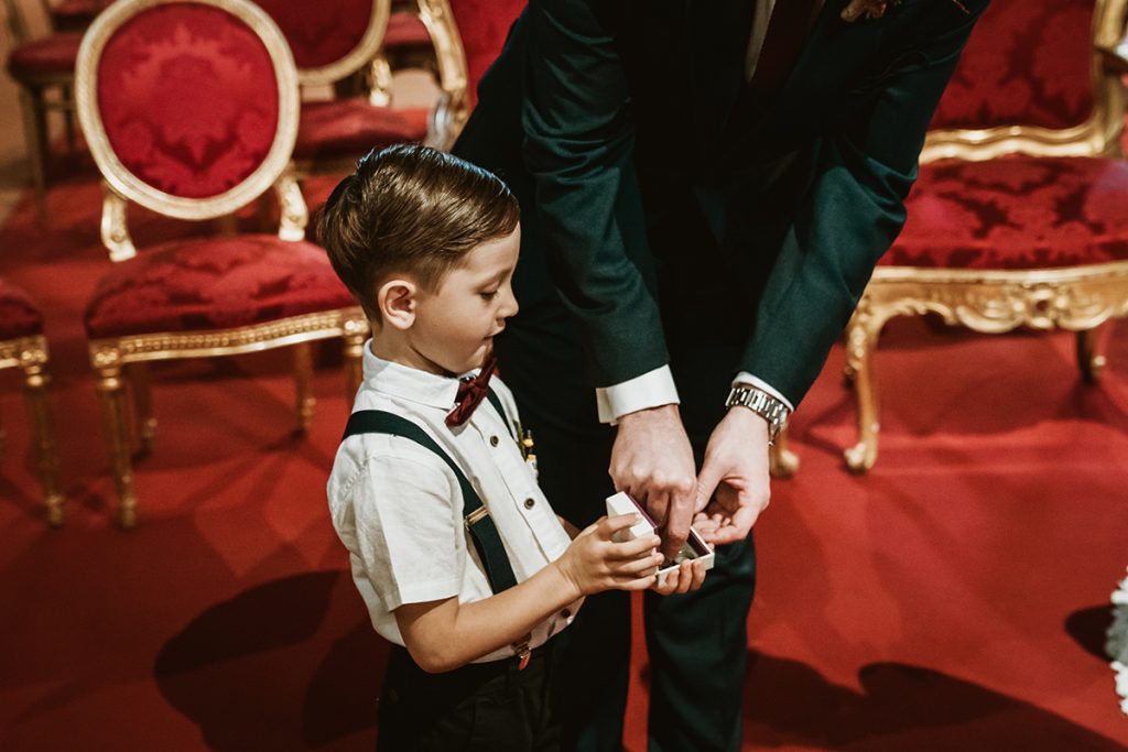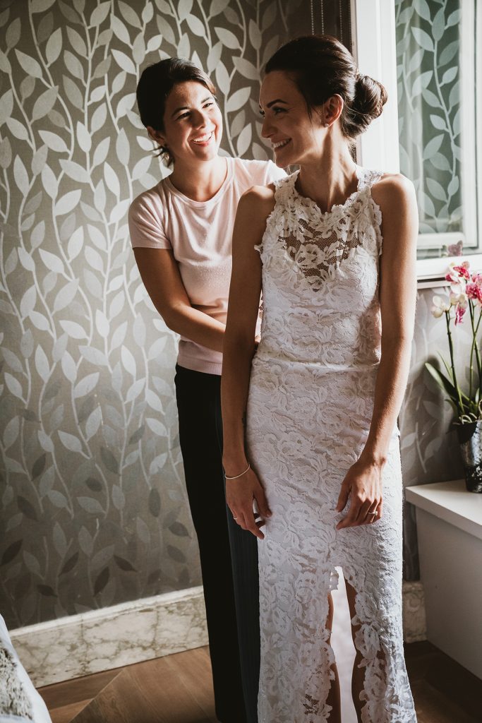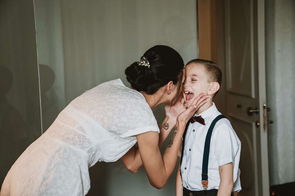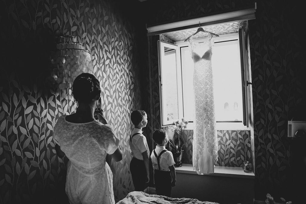 They got ready at Palazzo Manfredi(Rome) where they had one room overlooking the Colosseum. The room was designed in a way that they could not see each other while getting ready and still both share this same moment with both their two children.