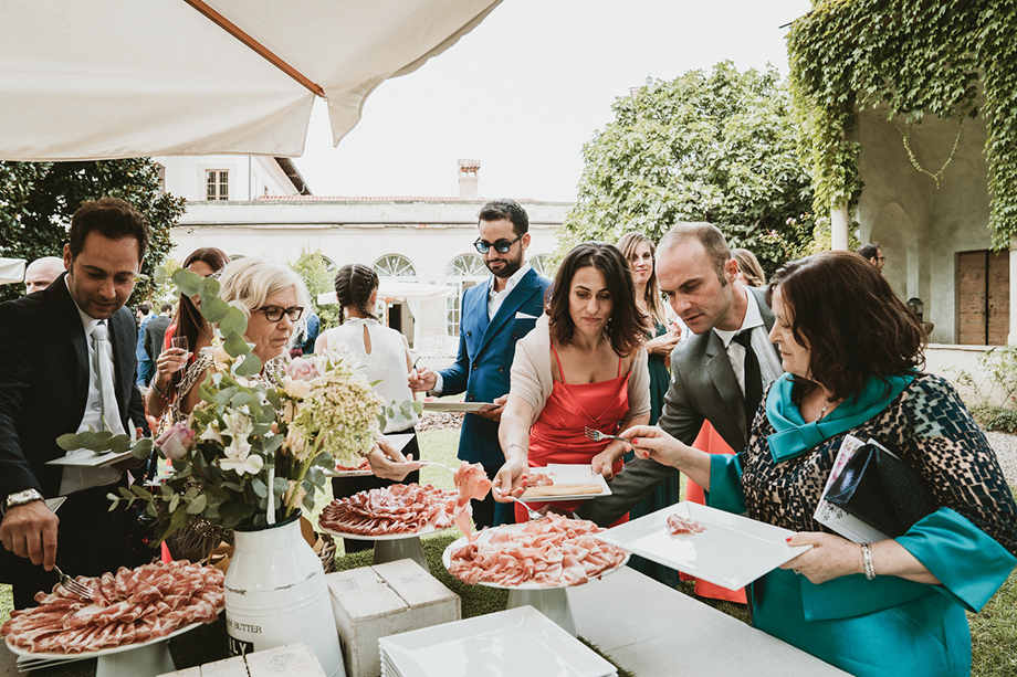 Usually wedding venues in Italy do not have in site restaurants. If they do, quotes will usually be around €100 – €120 per person. If you need to hire an external catering, the cost per person will be an average of €180 per person. Remember that you will have to add VAT to all your quotes. The quotes usually include an aperitivo, the meal with 3 courses, water and wine. They also include the waiting staff and all the costs connected to rental (e.g. cutlery, chairs, linen..).