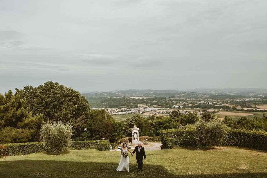 Bride walking to church with her father on a destination wedding in Italy | Costs of a wedding